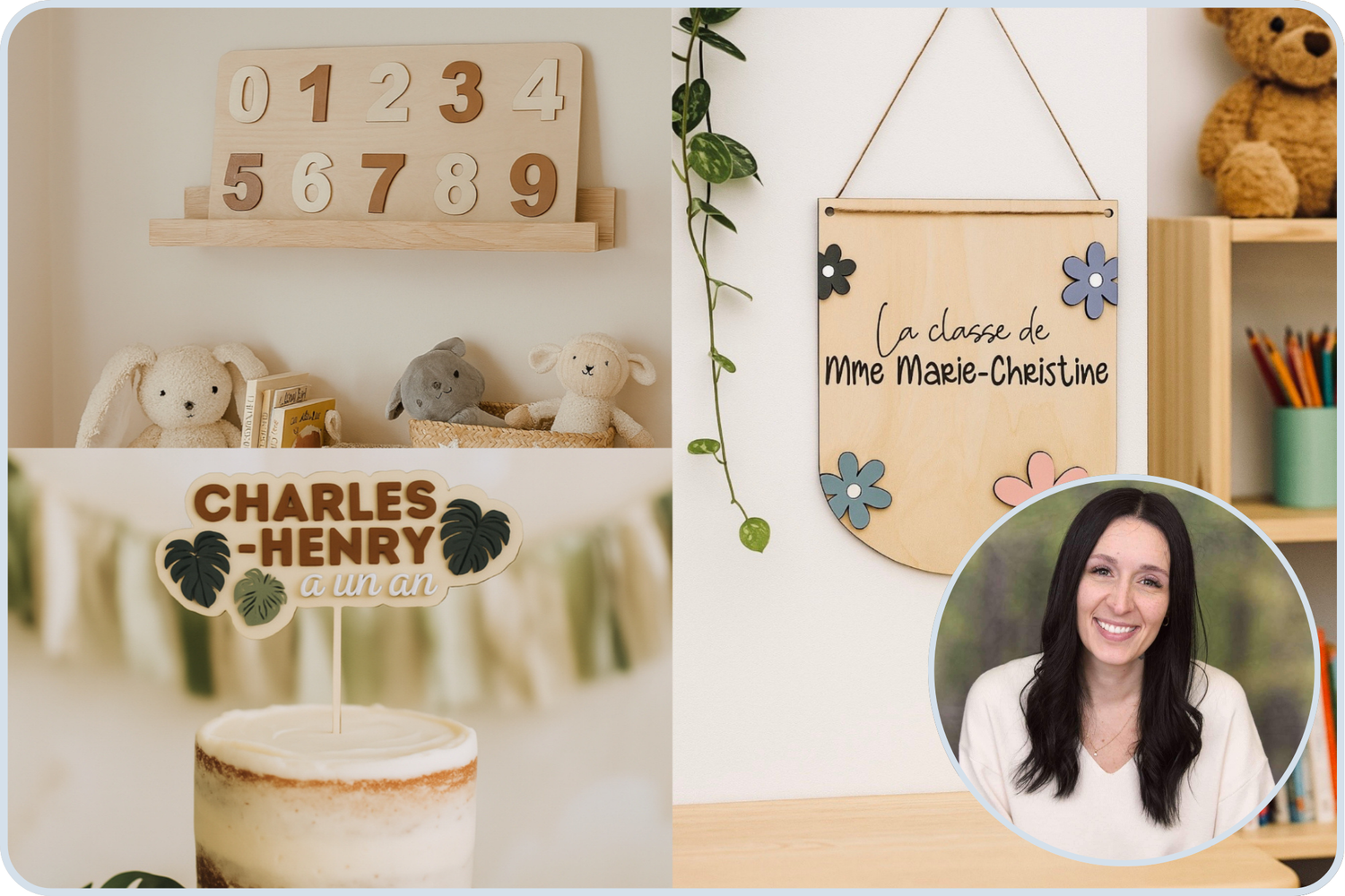 Une petite entreprise artisanale spécialisée dans la découpe de bois et la gravure au laser, où chaque création est pensée et réalisée avec soin.