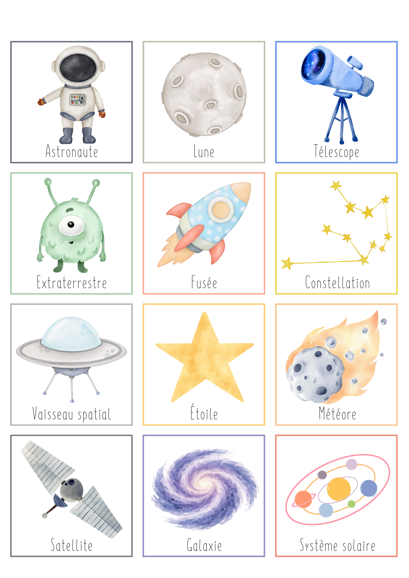 Idées d'activités 0-5 ans et matériel à imprimer gratuitement sur la thématique de l'espace :)